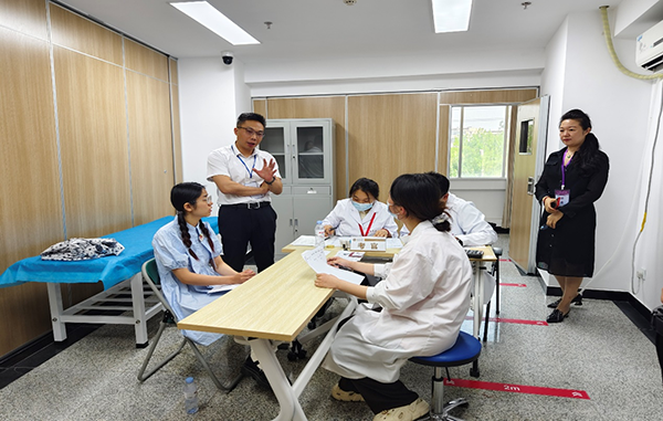山东第一医科大学(山东省医学科学院)临床与基础医学院副院长钟宁、眼科学院副院长王国荣、医学模拟中心主任程卫平、医院管理与疾病控制部科长金萍来我院进行巡考。医院教育部负责人王波、总考官刘毅主任医师、副总考官杨乐副主任医师、教育部及临床技能培训中心相关工作人员参与本次技能考核组织、培训及巡考工作。