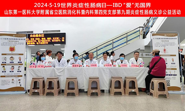 每年的5月19日是“世界炎症性肠病日(World IBD Day)”,今年的主题:“IBD 爱无国界”。为提高公众对炎症性肠病(IBD)的认识,呼吁社会对炎症性肠病患者的关爱,为患者提供及时、专业的医疗咨询,5月20日,山东第一医科大学附属省立医院(山东省立医院)消化科、内科第四党支部在中心院区门诊楼一楼大厅成功举办了以IBD“爱”无国界为主题的世界炎症性肠病义诊活动。