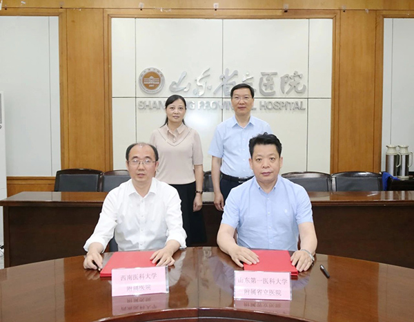 近日,山东第一医科大学附属省立医院(山东省立医院)与西南医科大学附属医院东西部同质化发展暨共建国家区域医疗中心合作协议签约仪式在济南举行。校(院)党委副书记、省立医院党委书记吴向东,泸州市副市长罗素平参加签约仪式并讲话。省立医院党委委员、副院长王荣主持会议并介绍国家区域医疗中心建设相关工作,西南医科大学附属医院党委书记徐勇介绍双方合作情况。徐勇和省立医院党委委员、副院长李乐平代表双方签署协议。省立医院在家院领导及相关职能部门负责人,泸州市政府、卫健委、西南医科大学附属医院和山东省立医院泸州医院等单位相关负责人参加活动并座谈交流。