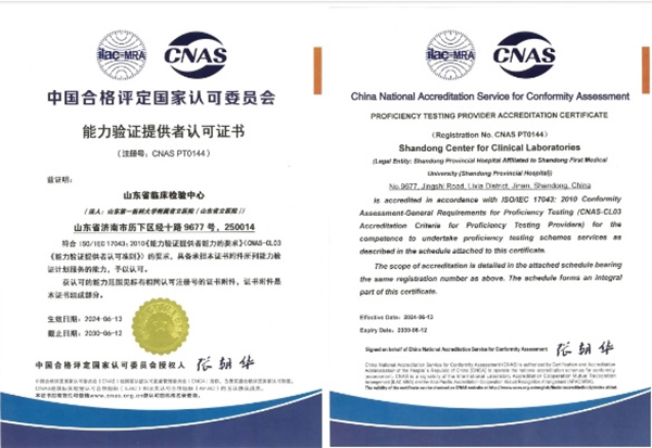 全国第八家!山东省临床检验中心获得国家认可委PTP认可证书