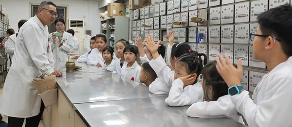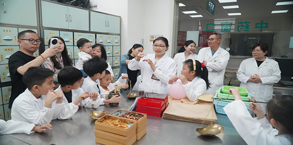 随后,以处方“酸梅汤”为例,由主管药师王静、杨银涛、邵亭亭、李慧和孙夏潇分组对调剂过程和煎煮方法进行细致的讲解。中药师们“手把手”地细心教导,小朋友们认认真真地学并争先恐后地参与到调剂中,一双双求知的小眼神充分体现了中医药传统文化的魅力。