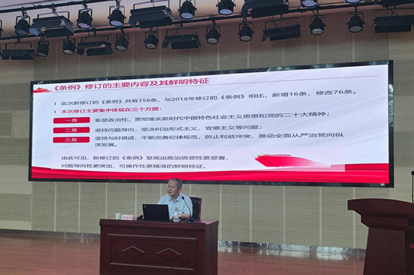 张悦祯指出,《条例》在党的二十大后再次修订,是贯彻落实习近平新时代中国特色社会主义思想和党的二十大精神的必然要求,是将党章的要求转化为纪律规定的实际行动,实现了党内法规建设的与时俱进,为推动全面从严治党向纵深发展提供了坚强纪律保障。