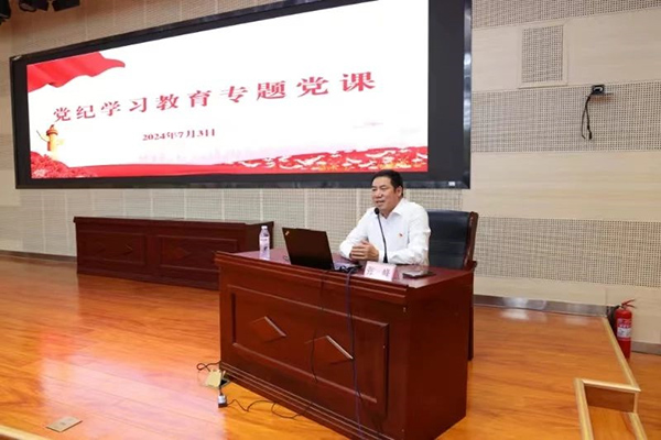 7月3日上午,为深入开展党纪学习教育,进一步增强党员干部的纪律意识和规矩意识,按照医院党委统一部署,山东第一医科大学附属省立医院(山东省立医院)机关党总支开展党纪学习教育专题党课。医院党委委员、纪委书记张峰为总支230余名党员及医院部分受邀同志讲授党课,机关党总支书记董宝华主持会议。