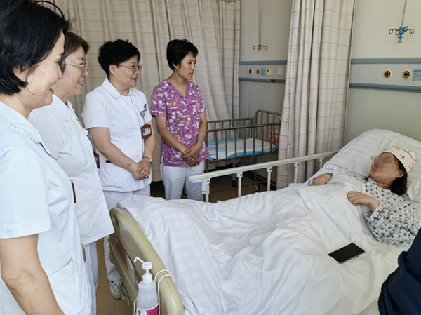 次日,得知情况的医院护理部主任杨丽娟与内科系统科护士长伊洪莉、妇产五官系统科护士长刘霞以及新生儿科护士长李敏敏前往产科病房看望产妇,向产妇送上问候与祝福。产妇及家属流下感动的泪水,产妇激动地表示,孩子是二胎,不满37周,因腹痛半天来院就诊,刚刚停好车就出现了破水,意外的突发、临产阵痛的恐惧让年轻的夫妻俩手足无措。整个救助过程中,她充分感受到了省医医护团队的专业与温暖,并不断地说“感恩省立医院,你们是上天派来帮助我们的。”产妇家属向在场的医护人员深深地鞠了一躬,并希望自己的孩子长大也可以成为一名医护人员,将这份医者仁心传承下去。
