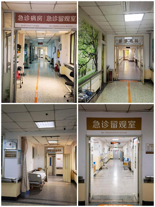 科室为一站式救治中心,设有院前急救、急诊门诊、抢救室、清创室、留观室、急诊综合病房、急诊重症监护室 (EICU) 、急诊手术室、急诊放射、急诊检验、急诊超声、胸痛中心、卒中中心、创伤中心。目前床位数为176张 (含病区、重症监护病房、急诊抢救室和留观室) ,年度急诊量在20万人次以上,抢救人次2万次以上,年住院出院人数2000余人次,病房使用率在96%以上。