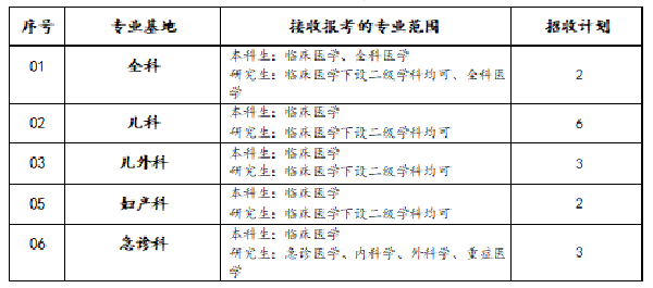 2、单位委培住院医师:临床医学/口腔医学专业本科及以上学历,已从事临床医疗工作,需要接受培训的人员。基层医疗卫生机构(乡镇卫生院、社区卫生服务机构)从事临床类专业岗位的人员限报全科医学专业;