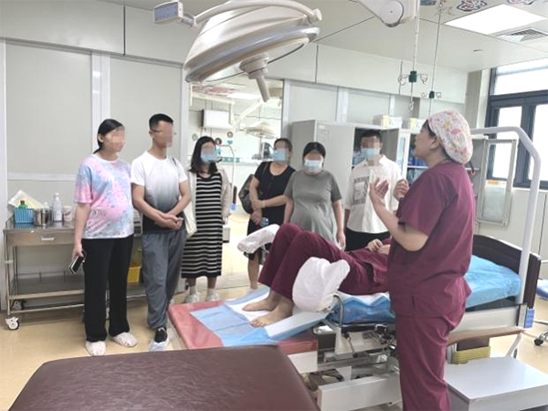 8月2日,为缓解孕妇及家属分娩恐惧,东院产房举办“分娩预演-迎接新生的彩排”主题活动,邀请7对计划自然分娩的孕妇及家属参观产房,资深助产士高莹现场讲解了分娩相关知识、减轻分娩疼痛的方法以及母婴皮肤接触与母乳喂养等内容,并现场示范了导乐球、拉玛泽呼吸法、自由体位待产等内容,帮助她们提前体验分娩过程,帮助孕妇及家属以更加轻松的心态迎接分娩。