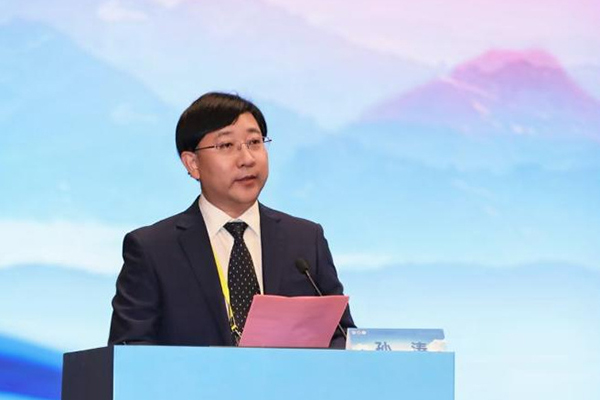 山东省医学会疼痛学分会主任委员孙涛教授与安徽省医学会疼痛学分会主任委员王立奎教授进行会旗交接仪式