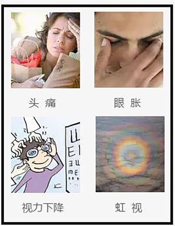 情绪波动、过度疲劳、近距离用眼、长时间处于暗室环境、局部应用抗胆碱药物等是原发性急性闭角型青光眼的诱发因素。国庆期间,大家相聚一起,往往暴饮暴食、亲友间难免高谈阔论,或欣喜亦或产生口角,作息不规律或者外出旅游过度疲劳、无限制低头玩手机甚至暗室看电影,都有可能诱发急性闭角型青光眼的发生。