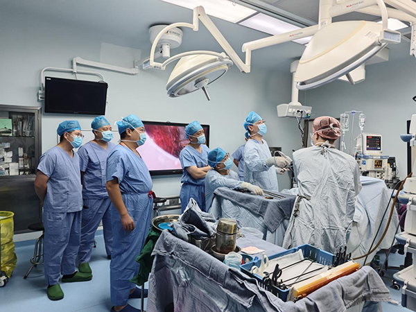 手术演示环节,蒋绍博教授团队进行了三台腹腔镜肾上腺肿瘤切除术及两台嗜铬细胞瘤切除术。规范流畅的手术操作、清晰的手术视野、精细的手术技巧以及独到的手术器械使用经验和默契的团队配合,受到了参培人员的一致好评。手术期间,参培人员与蒋绍博主任团队进行了深入的互动讨论,表示收获颇丰。