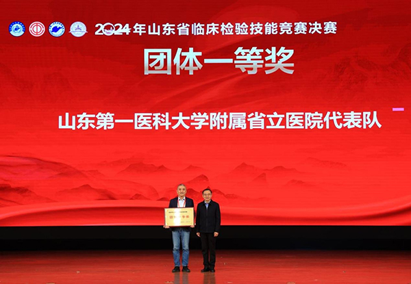 11月15日-17日,由山东省卫生健康委员会、山东省总工会联合主办的2024年山东省临床检验技能竞赛决赛在山东第一医科大学(山东省医学科学院)济南校区举行。山东第一医科大学附属省立医院(山东省立医院)代表队在比赛中发挥出色,最终荣获团体一等奖,并荣获个人一等奖、三等奖各一项。省卫生健康委党组成员、副主任徐民,省卫生健康委二级巡视员、直属机关工会主席崔成立,山东第一医科大学(山东省医学科学院)副校(院)长王宇轩等出席并为获奖选手颁奖。