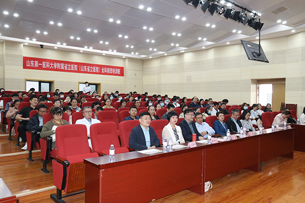 2024年4月25日,山东第一医科大学附属省立医院(山东省立医院)全科医学科在我院成功举办了2024年度全科专业住院医师规范化培训师资培训班,为加强全科医学师资队伍建设,提升全科医生医疗卫生服务能力, 深化内涵建设,确保全科带教师资具备扎实的临床指导能力与“传、帮、带”意识,以实现全科住院医师规范化培训的“过程规范化,结果同质化”。山东省卫生健康委科技教育处处长马强,党委委员、副院长王荣,教育部负责人王波,山东省卫生科技与人才发展中心王添印主任,教育部科长张娟等参加培训班启动仪式并致辞。全科医学科主任钟霞主持会议。我院各专业基地主任,教学主任,教学秘书,以及全科师资100余人参加了本次培训。