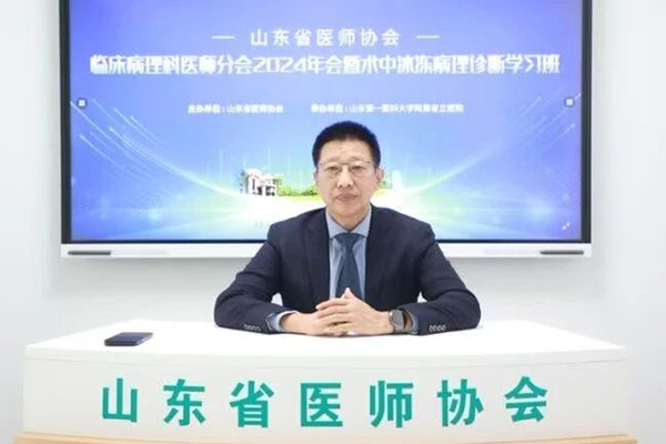 近日,由山东省医师协会临床病理科医师分会和山东省公共卫生学会临床病理学分会共同主办,山东第一医科大学附属省立医院(山东省立医院)承办的术中冰冻病理诊断学习班在济南顺利召开。本次会议以“开放创新促进学术发展、集思广益加强学科建设”为主题,旨在搭建一个与全国知名病理专家学习和交流的平台,提升基层医院病理诊断水平。山东省医师协会常务副会长任勇线上致辞,省立医院党委委员、副院长王荣参加开幕式并致辞,省立医院病理科主任林晓燕主持会议。