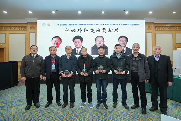 为感谢神经外科领域做出过突出贡献的老一辈学术专家,会议举行了突出贡献老专家颁奖仪式,为费昶、刘汉生、王道奎、种衍军四位杰出的老专家颁发山东省神经外科突出贡献奖。省立医院神经外科主任医师韩韬主持颁奖仪式。