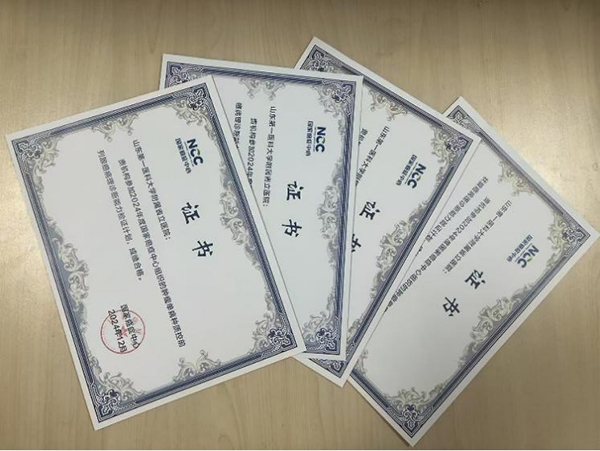 在PQCC主办的2024年度甲状腺癌、前列腺癌、胃癌及淋巴瘤单病种质控病理诊断能力验证计划项目中,省立医院病理科诊断医生凭借其精准病理诊断能力,病理诊断能力验证计划项目均以高分通过。病理科还参加了PQCC组织的免疫组化病理室间质控,并参加了分子质控项目包括肺癌EGFR、MET、ROS1和ALK的基因检测,结直肠癌NRAS、BRAF和KRAS基因检测以及乳腺癌和胃癌HER2的荧光原位杂交(FISH)检测。病理科技术组技术人员均按照规范操作规程和严谨的判读分析,各项免疫组化和分子检测均成功获得了PQCC颁发的合格证书。