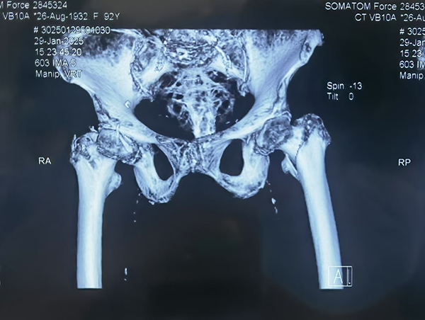 除夕夜,92岁的李奶奶不慎摔倒,导致股骨粗隆间骨折。这一常见于老年人的髋部骨折,因其高发病率和严重的并发症风险,一直是老年健康的重大威胁。受伤后,李奶奶被紧急送往省立医院中心院区。省立医院创伤中心是山东省创伤中心、山东省创伤质控中心挂靠单位,国家创伤区域医疗中心建设单位,在老年髋部骨折的手术治疗方面积累了丰富的经验。面对高龄患者常伴有的多种基础疾病,以及手术风险极高的挑战,创伤中心医疗团队迅速启动紧急救治流程。