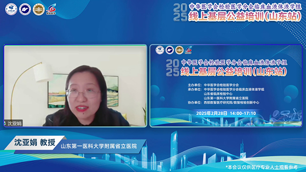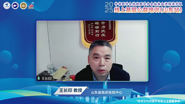 2月28日,由中华医学会检验分会主办,中华医学会检验分会临床血液学体液学学组与山东省临床检验中心、山东第一医科大学附属省立医院(山东省立医院)共同承办的“中华医学会临床血液学体液学学组2025年线上基层公益培训(山东站)”成功举办。中华医学会检验分会第十一届常委及临床血液学体液学学组组长、上海医学会检验分会主任委员、上海交通大学附属瑞金医院实验诊断中心主任王学锋,山东省临床检验中心、省立医院临床医学检验部副主任王长印参加培训并致辞。中华医学会临床血液学体液学学组委员、省立医院临床基础检验科副主任沈亚娟主持开幕式。
