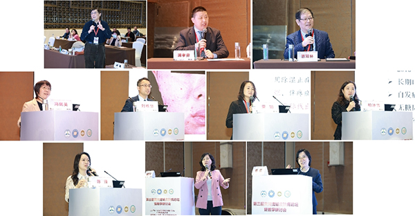 疑难危重病例专场上,中山大学附属第三医院皮肤与整形美容科主任冯佩英、广西医科大学第一附属医院皮肤性病科副主任刘栋华、中南大学湘雅医院皮肤科副主任粟娟、哈尔滨医科大学附属第二医院皮肤性病科主任柏冰雪、重庆医科大学皮肤科副主任陈瑾、省立医院皮肤科主任党宁宁、附属皮肤病医院党委书记刘红等分别作《当狼出现长期发热,原因何在?》《种痘样水疱病样T淋巴细胞增生性疾病》《皮肤脓疱伴腹腔积脓1例》《一例特殊疾病引发的思考》《Rosai-Dorfman病的激光治疗》《全身红皮伴腹泻一例》《兜兜转转,原来是你》病例汇报。上海交通大学医学院附属瑞金医院郑捷、浙江大学医学院附属第二医院皮肤科主任满孝勇、南通大学附属医院皮肤科主任曹双林等专家主持。