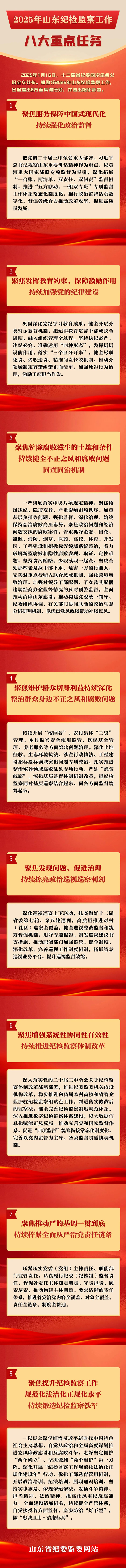 【清廉医院建设】图解丨2025年山东纪检监察工作八大重点任务
