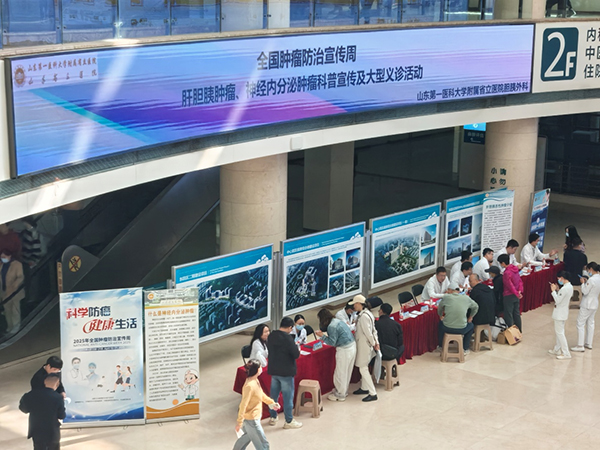 2025年4月15日至21日是第31个全国肿瘤防治宣传周,本届宣传周以“科学防癌 健康生活”为主题,旨在普及肿瘤防治知识,倡导健康生活方式。山东第一医科大学附属省立医院(山东省立医院)肝胆外科党支部、胆胰外科联合消化内科、感染性疾病科、医学影像科、肿瘤中心、胃肠外科等科室,举办肝胆胰肿瘤、神经内分泌肿瘤科普宣传及多学科联合义诊活动。此次活动以多学科协作(MDT)为核心,聚焦肝胆胰恶性肿瘤及神经内分泌肿瘤的规范化诊疗,通过现场专家问诊、健康宣讲等形式,为患者及市民提供精准高效的医疗咨询与健康指导,同时传递科学抗癌防癌理念。