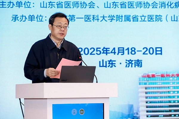 4月18日-20日,由山东省医师协会、山东省医师协会消化病介入专业委员会主办,山东第一医科大学附属省立医院(山东省立医院)承办的“山东省医师协会消化病介入专业委员会2025年学术年会暨第十九届消化系统疾病介入诊疗新技术论坛”在济南举行。山东省医师协会会长孙洪军,中华医学会消化内镜学分会候任主任委员金震东,省立医院党委委员、副院长肖伟,山东省医师协会消化病介入专业委员会主委、省立医院消化科奥体院区病区主任张春清参加开幕式并致辞。省立医院消化科奥体院区病区副主任史永军主持开幕式。