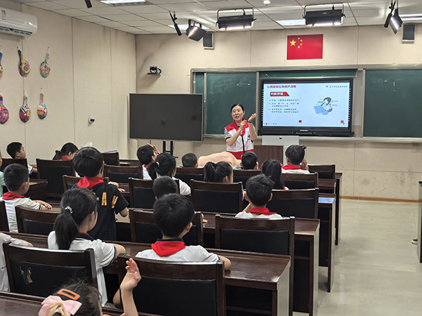活动伊始,急救中心护士张燕南首先播放“小学生‘教科书式’救援”的视频,通过浅显易懂的语言、生动的图片资料向学生们讲解了“突遇意外如何正确拨打120”、“遇到晕倒如何冷静评估、准确施救”等关键知识。学生们围绕学习内容积极提问,现场氛围活跃热烈。