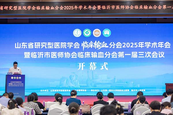 6月27日-28日,由山东省研究型医院学会、临沂市医师协会主办,山东第一医科大学附属省立医院(山东省立医院)和临沂市人民医院共同承办的山东省研究型医院学会临床输血分会2025年学术年会暨临沂市医师学会临床输血分会第一届三次会议在临沂市召开。临沂市人民医院党委副书记、院长车峰远,山东省研究型医院学会秘书长王兴步,山东省研究型医院学会临床输血分会主任委员、省立医院输血科副主任李浩等参加大会开幕式并致辞。临沂市人民医院输血科主任于连玲主持开幕式,来自全省130余名医院输血科和血站同仁参加会议。