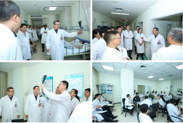 本次学习班立足肾上腺性高血压疾病全流程规范化诊治,采取“示教查房+现场观摩手术+授课”的模式,紧贴泌尿外科医师的实际工作需求,通过病房观摩、查房学习、手术演示、学术讲座等多种形式,展示高血压外科围手术期规范化流程。在示教查房环节,泌尿微创一病区主任蒋绍博教授团队带领学员们进行病房观摩、规范化查房交班、手术演示及理论授课,并介绍了省立医院高血压外科发展历程及取得成绩,与学员们深入交流经验、答疑解惑。