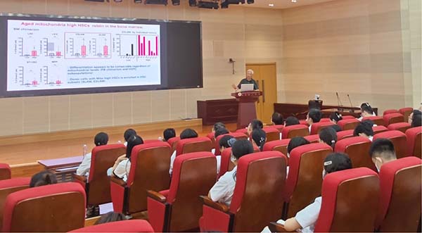 Toshio Suda教授曾任国际实验血液学学会主席,长期从事造血干细胞调控及癌症代谢调控领域的研究,在《Cell》《Nature》《Cell Stem Cell》《Blood》等国际顶级期刊发表SCI论文400余篇,获美国血液学年会(ASH)E. Donnall Thomas Lecture and Prize。Toshio Suda教授以《Mitochondria role in hematopoietic stem cell function》为题作专题报告,系统阐述了线粒体在造血干细胞衰老与再生中的作用机制。报告聚焦骨髓微环境,结合线粒体能量代谢与造血干细胞调控等前沿领域,深入浅出地分析了线粒体在造血干细胞功能中的重要作用。Toshio Suda教授还分享了团队关于衰老造血干细胞中线粒体特征及相关分子标志物的研究进展,深入剖析线粒体稳态与造血系统健康与疾病的关系。相关研究不仅为理解造血干细胞调控提供了全新视角,更为靶向干预衰老干细胞开辟了新路径。
