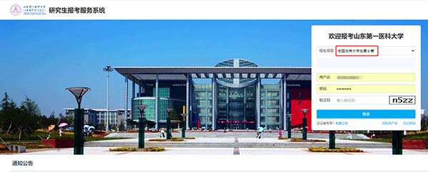 ①登录山东第一医科大学研究生报考服务系统,点击“全国优秀大学生夏令营”,首次点击“免费注册”注册账号。