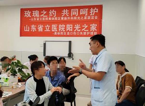 为提高肠造口患者生活质量,重拾生活信心,搭建医、护、患之间的交流平台,7月18日上午,山东第一医科大学附属省立医院(山东省立医院)胃肠外科奥体院区一、二病区与造口伤口失禁护理组共同举办了以“玫瑰之约·共同呵护”为主题的阳光之家联谊会。门诊奥体院区科护士长、造口伤口失禁护理组负责人殷静静,相关医生、学术小组核心成员以及30余位肠造口患者和家属共同参与本次活动。胃肠外科奥体院区一病区护士长刘伟伟、二病区护士长王德玉,伤口造口失禁护理组组长、创伤中心奥体院区三病区护士长桑晓明共同主持。
