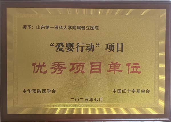“爱婴医院发展基金”于2016年6月在国家卫生健康委妇幼司支持下设立。为深入践行“健康中国2030”战略规划,积极响应《母乳喂养促进行动计划(2021-2025年)》政策号召,自2021年起,中国红十字基金会爱婴医院发展基金与中华预防医学会共同发起“爱婴行动——爱婴医院出院健康指导”项目。截至2025年7月,项目已覆盖全国10余个省、自治区、直辖市,吸引超百家爱婴医院积极参与。我院在奥体院区妇产五官系统负责人刘霞的带领下,于2024年加入该项目,成为山东省首批七家“爱婴行动”项目单位之一。