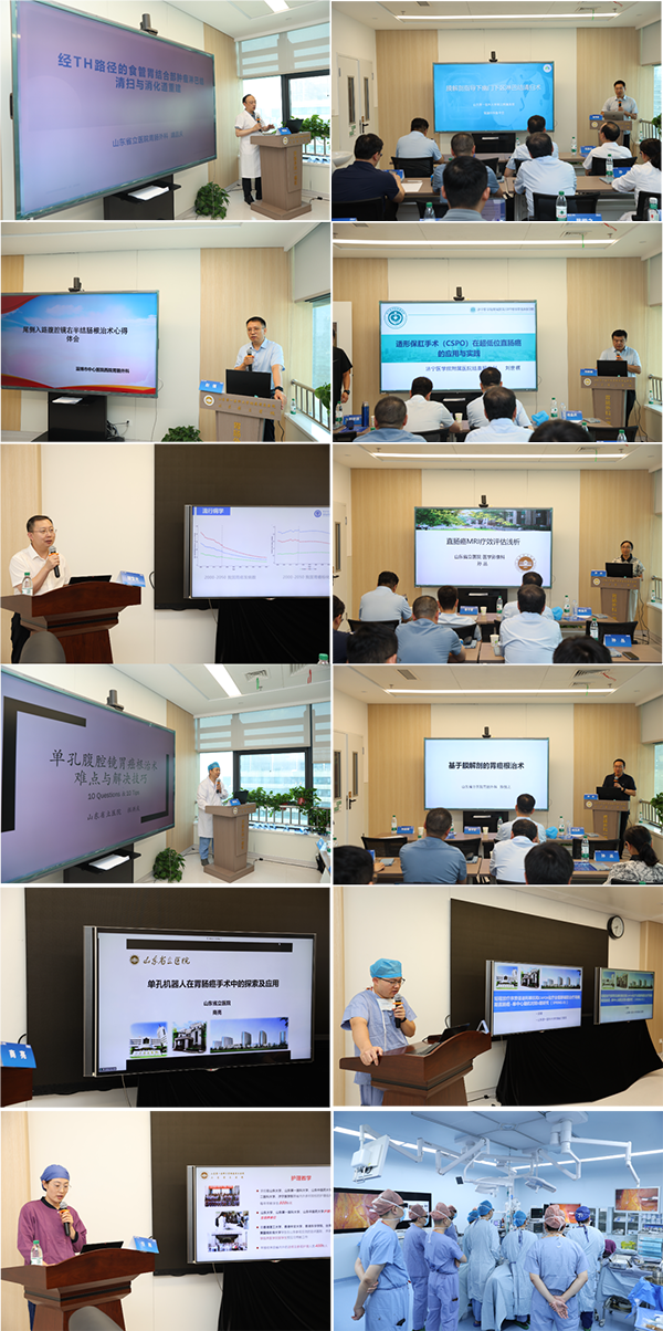 省内多位知名专家为学员们带来了精彩的学术报告。省立医院靖昌庆教授,山东第一医科大学第三附属医院鲁守堂教授,淄博市中心医院赵强教授,济宁医学院附属医院刘世祺教授,滨州医学院附属医院胡宝光教授,省立医院孙丛教授、禚洪庆教授、陈悦之教授、商亮教授、田锋教授、任燕主管护师等分别以《经TH路径AEG肿瘤手术的消化道重建》《膜解剖指导下幽门下区淋巴结清扫术》《腹腔镜右半结肠切除尾侧入路心得体会》《适形保肛手术在超低位直肠癌中的应用实践》《近端胃癌根治及双肌瓣吻合术开展体会》《直肠癌MRI疗效评估浅析》《单孔腹腔镜胃肠肿瘤手术》《基于膜解剖的胃癌淋巴结清扫》《单孔机器人胃肠手术探索》《局部晚期直肠癌新辅助免疫治疗进展》《从“被动配合”到‘“主动协同”——胃肠微创手术中的医护无缝衔接实践》进行分享,内容涵盖了胃肠道肿瘤微创治疗的关键技术、研究新进展及临床实践经验等,为参会者呈现了一场学术盛宴。