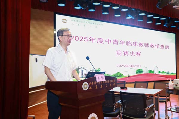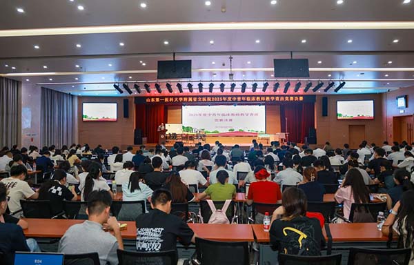 为营造良好教学氛围、促进教学质量提升,在第41个教师节来临之际,8月29日,山东第一医科大学附属省立医院(山东省立医院)举办2025年中青年临床教师教学查房竞赛决赛。校(院)副校(院)长刘传勇,省立临床学院副院长朱强参加开幕式。医院各专业基地主任、临床科室主任、教学主任、教学秘书和骨干临床教师、住培医师、实习生、教学部全体工作人员等300余人现场观摩,山东省远程医学中心进行同步直播。