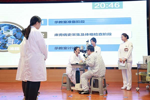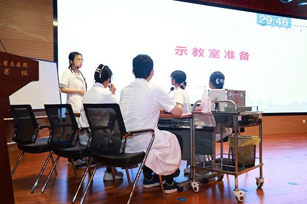 竞赛分初赛和决赛两个阶段。初赛以专业基地为单位组织报名,医院教学部组织院内外初赛评审专家对各参赛队伍报送的参赛视频、教学查房教案和PPT课件等参赛材料进行评审。经过激烈角逐,共8支队伍从22支参赛队伍中脱颖而出,入围决赛。