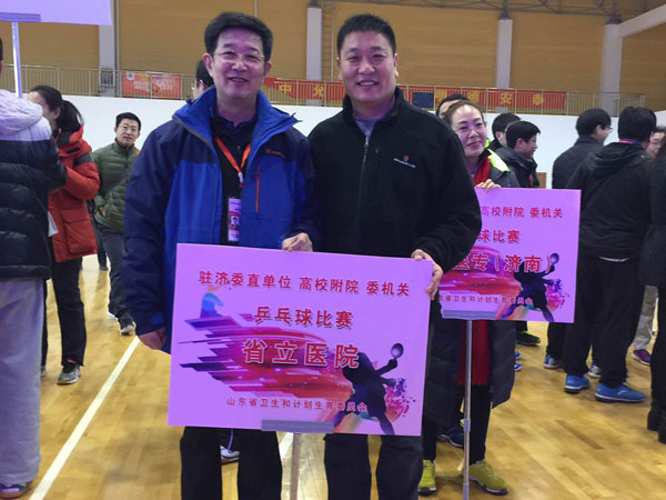 为丰富职工文化生活,加强职工之间交流,增进职工队伍凝聚力,助力“健康山东”建设, 11月26-27日,山东省医务工会在山东师范大学附中体育馆举办2016年山东省卫生计生系统驻济单位乒乓球比赛。副院长卢宝彦、院长助理高贵德带队参赛。经过大家的奋勇拼搏,我院取得女子单打冠、亚军,团体第五名的好成绩,并荣获“优秀组织奖”。