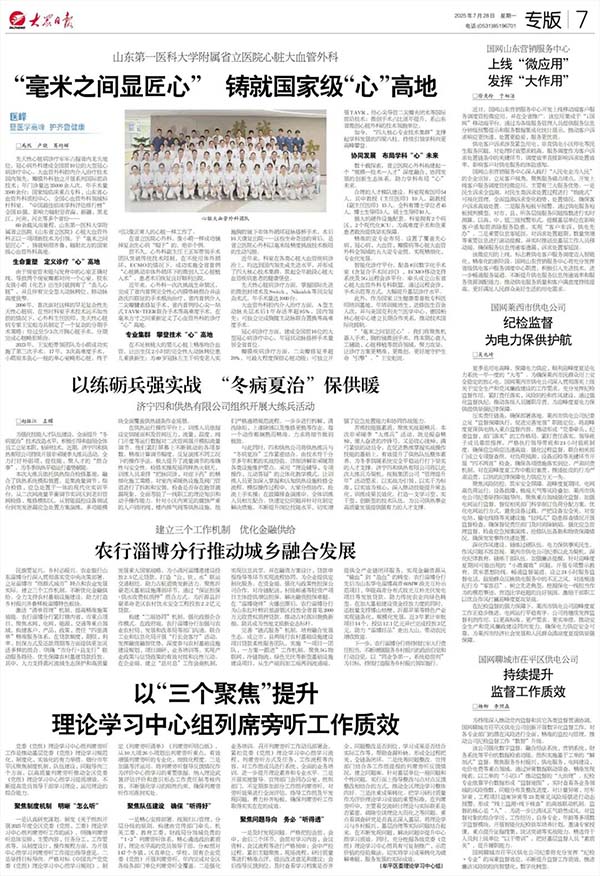 【媒体报道·大众日报】山东第一医科大学附属省立医院心脏大血管外科: “毫米之间显匠心” 铸就国家级“心”高地