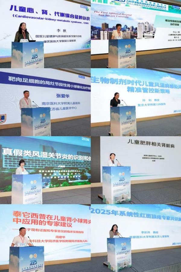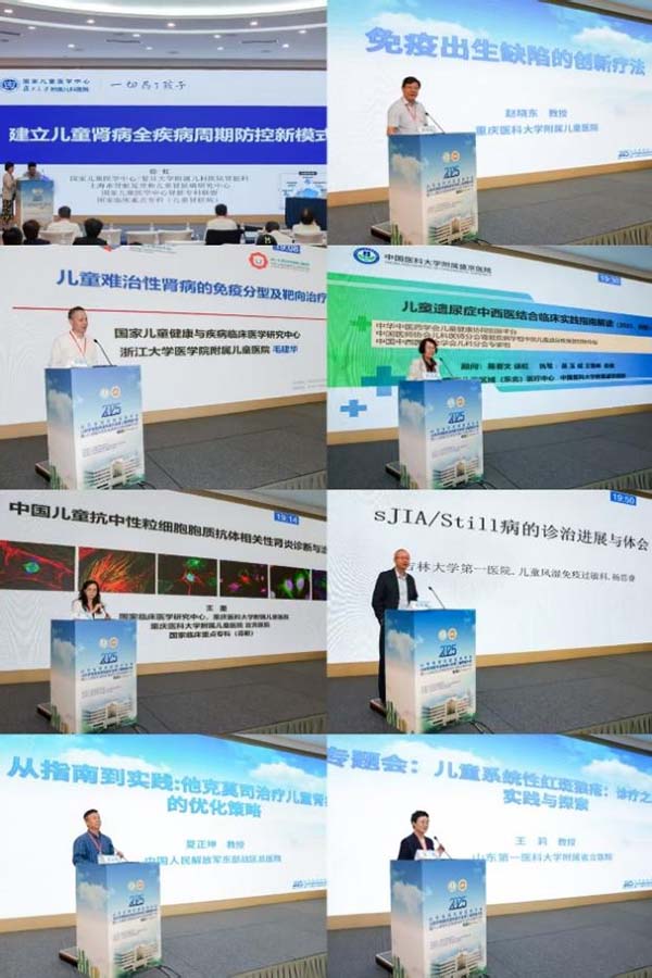 学术交流环节,会议邀请了首都医科大学附属北京儿童医院沈颖教授、李彩凤教授、刘小荣教授,复旦大学附属儿科医院徐虹教授、沈茜教授、孙利教授,重庆医科大学附属儿童医院李秋教授、赵晓东教授、王墨教授,南京医科大学附属儿童医院张爱华教授,浙江大学医学院附属儿童医院毛建华教授、卢美萍教授,华中科技大学同济医学院附属同济医院周建华教授、仇丽茹教授,中国医科大学附属盛京医院吴玉斌教授,中山大学附属第一医院蒋小云教授,中国人民解放军东部战区总医院夏正坤教授,吉林大学白求恩第一医院杨思睿教授,上海交通大学医学院附属儿童医院黄文彦教授,中南大学湘雅二医院党西强教授,北京大学第一医院王芳教授,青岛大学附属医院张秋业教授、常红教授,以及省立医院韩波教授、孙书珍教授、沈戈桢教授、王莉教授、李倩教授、余丽春教授等国内知名专家,围绕儿童肾脏风湿免疫疾病的最新诊疗进展、精准医学应用、罕见病和夜遗尿症诊治及全生命周期管理等热点领域展开了深度分享与研讨。首都医科大学附属北京儿童医院刘小梅教授、北京大学第一医院钟旭辉教授、河北省儿童医院张东风教授、吉林大学白求恩第一医院马青山教授、上海交通大学医学院附属儿童医院康郁林教授等专家学者担任会议主持嘉宾。会场学术氛围浓厚,互动交流热烈。