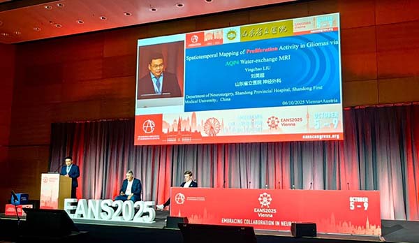10月5日-9日,欧洲神经外科年会(European Association of Neurosurgical Societies,EANS)在奥地利维也纳召开。作为全球神经外科领域的顶级学术盛会,本届大会汇聚了来自世界各地2000余名神经外科和神经科学专家,共同探讨领域前沿进展。山东第一医科大学附属省立医院(山东省立医院)神经外科刘英超教授受邀参会并作大会报告,发布了团队在胶质瘤精准诊疗方面的最新成果。