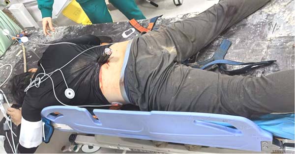 该患者不幸从高处坠落,被一根粗长的钢筋从后背贯穿腹部,伤情极其危重,生命垂危。患者被送至医院时已处于休克边缘,情况万分危急。面对这一罕见、复杂且极高风险的穿透伤,胆胰外科迅速启动响应机制,牵头组织创伤中心、泌尿外科、血管外科等多学科团队协同救治。