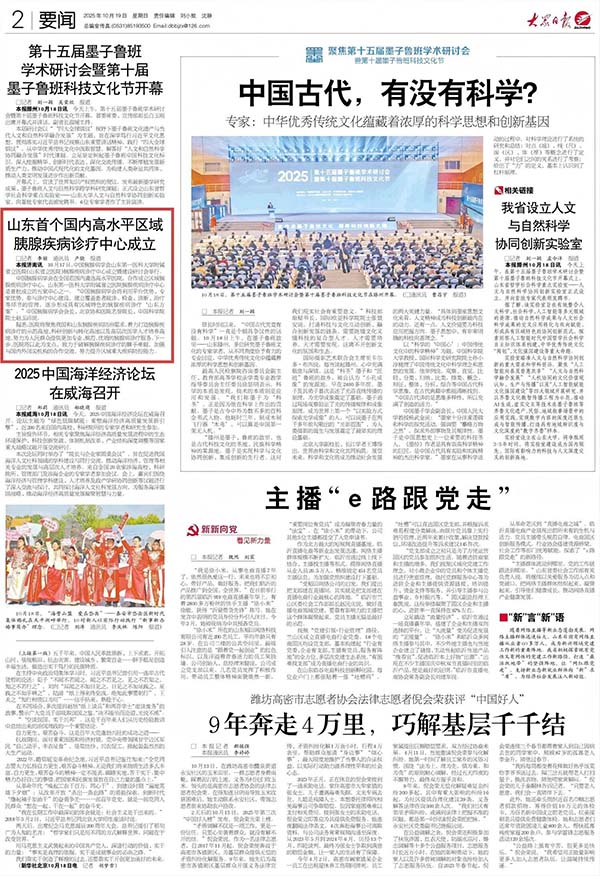 【媒体报道·大众日报】山东首个国内高水平区域胰腺疾病诊疗中心成立
