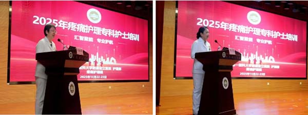 杨丽娟表示,免除疼痛是患者的基本权利,护士在疼痛管理中的主导作用日趋凸显,其专业意识与能力水平已成为影响诊疗质量的核心环节。培养疼痛专科护士队伍,既是医院践行“健康中国”理念,深化“专业、自信、合作”护理学科建设的重要举措,又是提升专科护理核心竞争力的有效路径。她希望全体学员以“空杯之心”虚心学习,以“思辨之智”积极实践,努力成为疼痛管理领域的护理先锋力量,共同推动疼痛护理专业高质量发展。
