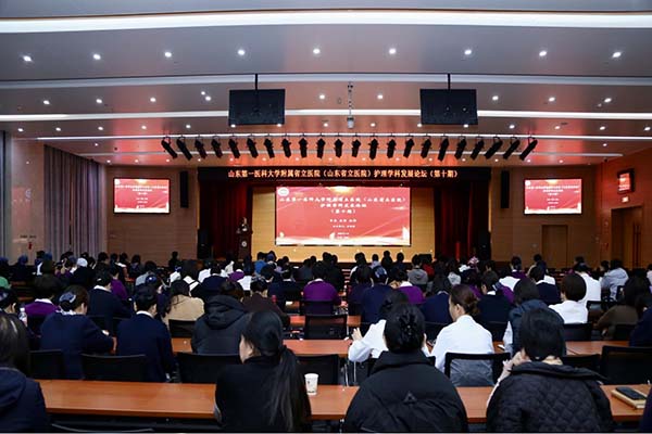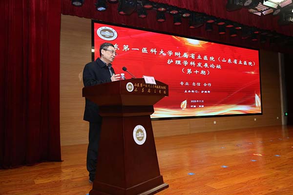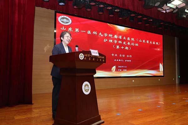 11月12日,山东第一医科大学附属省立医院(山东省立医院)第十期护理学科发展论坛在中心院区妇儿综合楼六楼学术报告厅举行,奥体院区诚和楼四楼学术报告厅同步远程参会。医院首席专家王荣教授参加论坛并致辞,护理部主任杨丽娟主持论坛。中华护理学会外科护理专业委员会主任委员汪晖、中华护理学会急诊专委会主任委员甘秀妮应邀作专题报告。护理部副主任孔冬、两院区科护士长、护士长、护士代表、进修护士及省立医院护理专科联盟代表500余人参加。