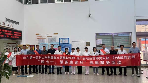 3. 开展便民志愿服务。联合门诊部党支部开展“迎七一,服务患者月”活动,党员在门诊大厅宣传预交金清退、清算等政策,为患者提供就医指引,用实际行动践行为民服务宗旨。