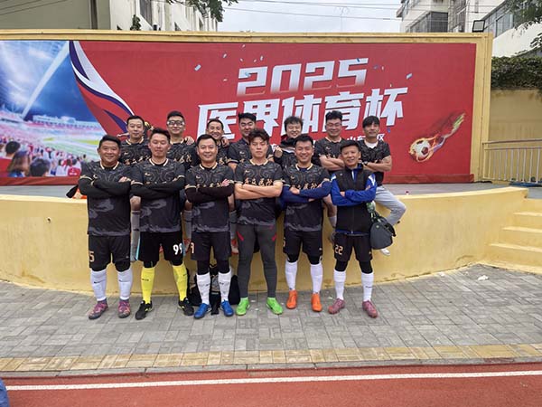 在2025年“医界体育”杯首届中国医疗系统足球赛(山东站)中,医院足球队在比赛中顽强拼搏,超越自我,荣获季军。本次赛事汇聚山东省内医疗系统的多支优秀队伍,并邀请北京大学第三医院、中国人民解放军总医院足球队等北京医疗行业强队参赛。在小组赛阶段,全体队员团结协作,以三战全胜、小组第一的优异成绩顺利晋级八强。在季军争夺战中,球队凭借出色发挥与坚定意志,最终7:3战胜对手,夺得赛事季军,充分展现了球队的整体实力和稳定的竞技状态。
