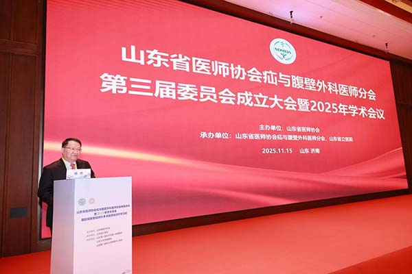 11月14日至15日,由山东省医师协会主办,山东第一医科大学附属省立医院(山东省立医院)承办的山东省医师协会疝与腹壁外科医师分会第三届委员会成立大会暨2025年学术会议在济南举行。中国医师协会副会长、山东省医师协会会长孙洪军,省立医院党委委员、副院长张悦祯,中国医师协会外科医师分会疝和腹壁外科专委会主任委员陈杰以及省立医院胃肠外科副主任石玉龙参加会议并致辞。省内外200余名疝与腹壁外科领域的知名专家、学者和基层医师参会。