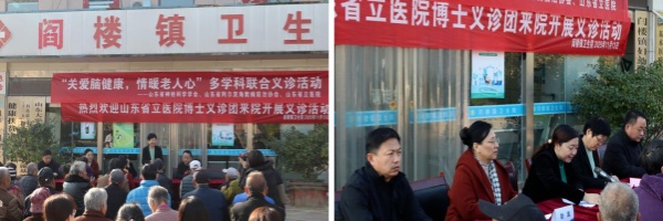 11月13日,由山东省神经科学学会、省阿尔茨海默病防治协会、山东第一医科大学附属省立医院(山东省立医院)共同组织开展的“关爱脑健康、情暖老人心”多学科联合义诊活动在聊城市阳谷县阎楼镇卫生院进行。山东省神经科学学会副理事长宋良贞、省立医院对外合作与医务社会工作处副处长尉真参加活动并讲话,阳谷县卫健局局长刘晓燕主持活动。省神经科学学会副理事长兼秘书长、省阿尔茨海默病防治协会会长、省立医院神经内科主任杜怡峰教授带领医院神经内科及相关科室11名专家参加义诊活动。