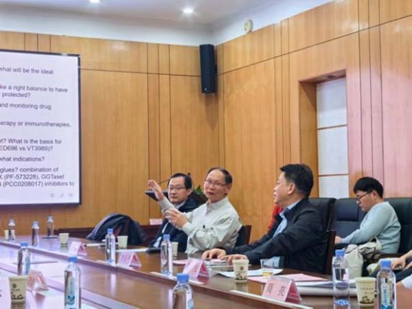 在交流讨论环节,参会专家与Hong院士就多个前沿议题展开深入讨论,内容涵盖基于通路下游分子的生物标志物筛选、TEAD抑制剂使用后的肾功能保护策略,以及肿瘤免疫微环境的分层与评估方法。Hong院士还详细介绍了TEAD相互作用的关键残基、与氟芬那酸(FA)结合的TEAD2结构特征、TEAD疏水口袋的可靶向性,以及CPD10将YAP转移至细胞质的机制及其作为后续药物开发的框架价值,为联合治疗策略提供了科学依据。同时,他针对YAP/TAZ-TEAD致癌功能的背景依赖性、理想适应症选择,以及泛TEAD抑制剂与亚型特异性抑制剂的优劣比较等问题进行了细致解答,并分享了团队未来研究方向。现场学术氛围浓厚,交流讨论热烈。