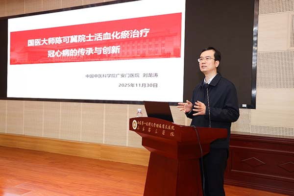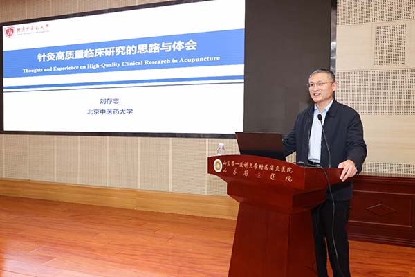 学术交流环节,刘存志教授与刘龙涛教授分别作专题学术报告。刘存志教授以《针灸高质量临床研究的思路与体会》为题,系统阐述了针灸学科的发展现状,从临床研究设计、疗效评价到循证转化等多维度进行分析。他指出当前应着力突破假针对照标准化、真实世界证据整合及多学科交叉融合等瓶颈,并结合创新研究实例分享了宝贵经验。刘龙涛教授以《国医大师陈可冀院士活血化瘀治疗冠心病的传承与创新》为题,系统解读了陈可冀院士的“活血化瘀、益气通脉”的学术思想与临证经验,详细介绍了其在方药配伍、辨证加减、疗效评价等方面的特色经验,并分享了团队在理论传承与现代探索方面的进展,展示了中医药在现代医学中的发展潜力。