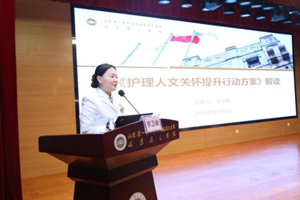 护理部副主任李卫峰就《护理人文关怀提升行动方案》作专题解读。她从政策制定背景出发,系统阐释了护理人文关怀提升行动的总体目标与核心任务,逐项说明了方案中的实施计划、工作要求与保障机制。她还重点介绍了护理部本年度着力推进的提升患者满意度十大措施等具体内容,为下一阶段扎实推进护理人文关怀工作明确了实施路径与行动指引。